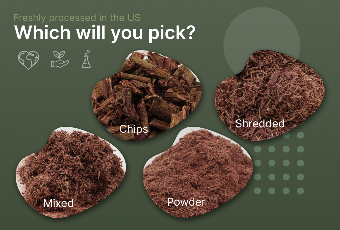 Beim Bestellen wählst du die Form: Chips für maximale Eigenverarbeitung, Shredded für effiziente Weiterverarbeitung mit vergrößerter Oberfläche, oder fein gemahlenes Pulver für direkte Anwendung. Alle drei Formen sind sofort verwendbar, vollständig aufbereitet, ohne weitere Verarbeitung durch den Käufer erforderlich.